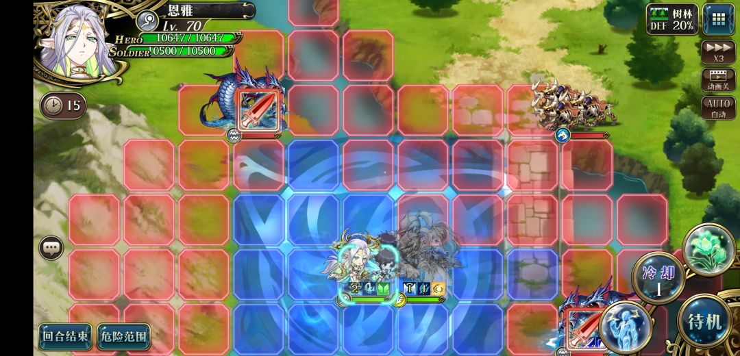 6.恩雅咒法直击左面水兵,艾希恩3c下面水兵,下回合打死剩下的敌兵胜利