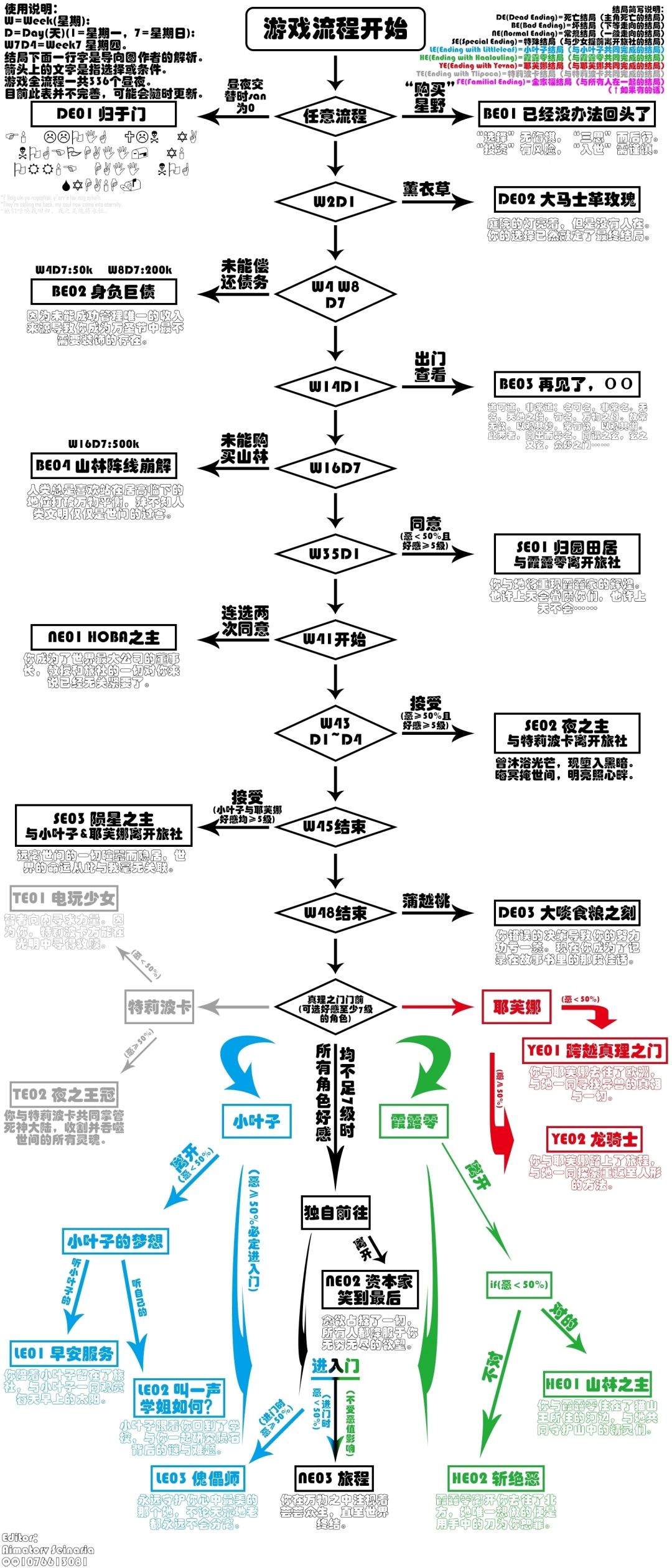 好感度:本作一共四个角色,每个角色都有独立的好感剧情和好感结局,我推荐在20周前优先提高零零零的好感到5级(不需要更多),因为她的一个CG剧情只有在这之前才可以解锁,后面会因主线剧情而把支线吞掉,其次拉好感度就纯看个人喜欢了,如果想要打全结局就在大结局前不要想着拉到7级及以上(因为有个单身结局),下面放了个全结局的图有需要可以自己看看。
