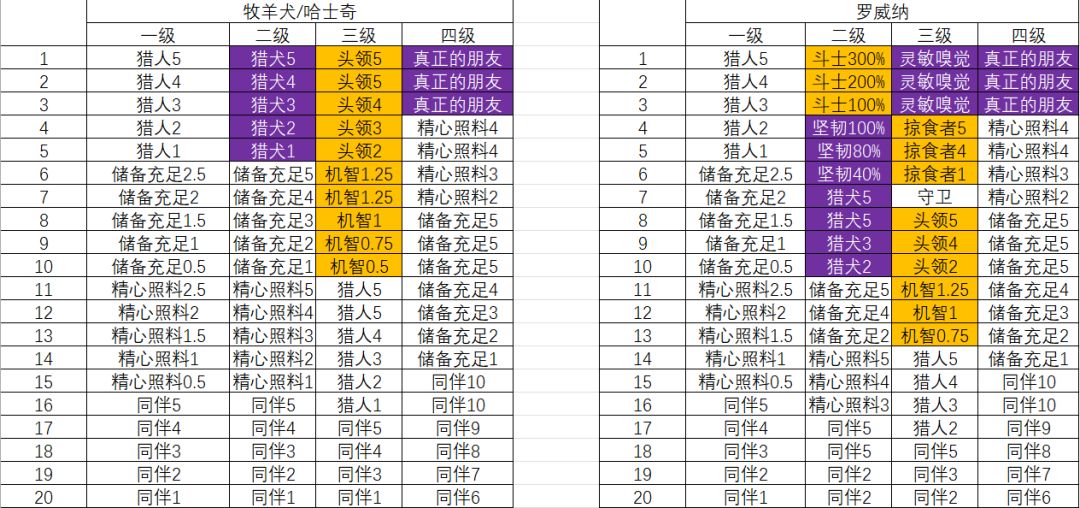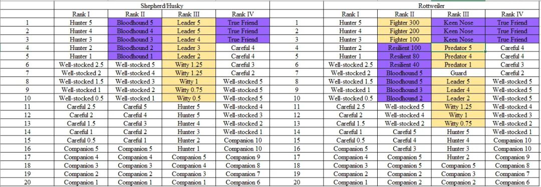 因此只要摸清楚技能序列,然后在序列的特定的位置培养一只4级罗威纳就可以获得一只心仪的罗威纳。
