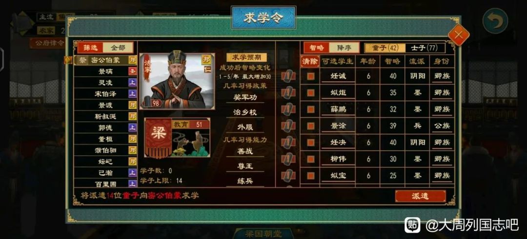 开局拜卿,培养宗室与卿室子弟,6岁开始求学到14岁,等政策凑满6个之后放上朝堂讲学提高智商,即使是10智力的白痴也能升邦