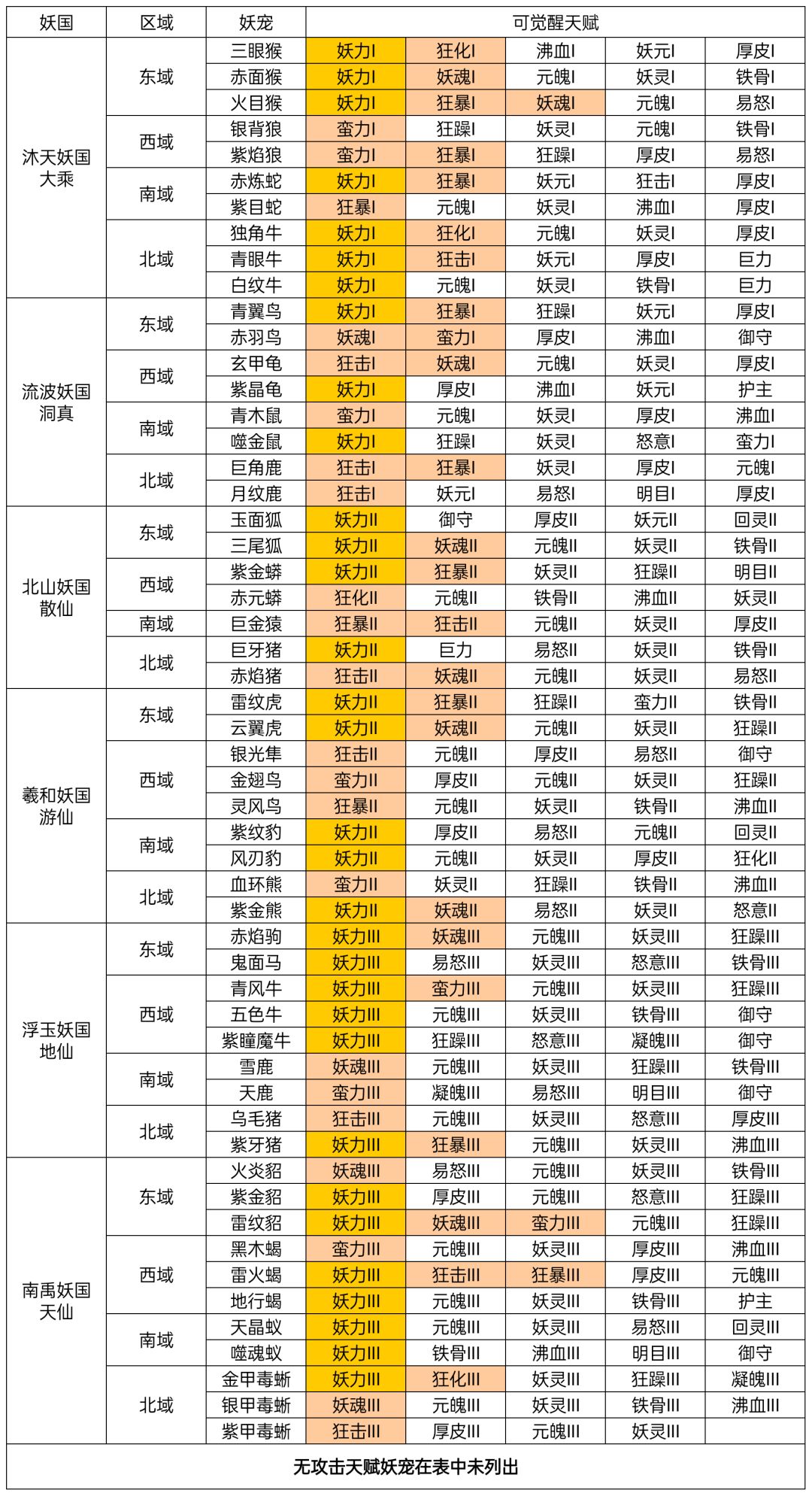 6.宠物可觉醒天赋表更新