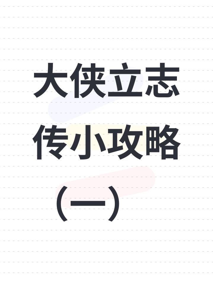 大侠立志传小攻略(一)