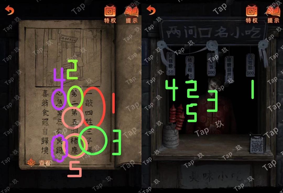 点击右侧窗口,使用【冥籍】【纸钱】【经文】,获得线索提示
