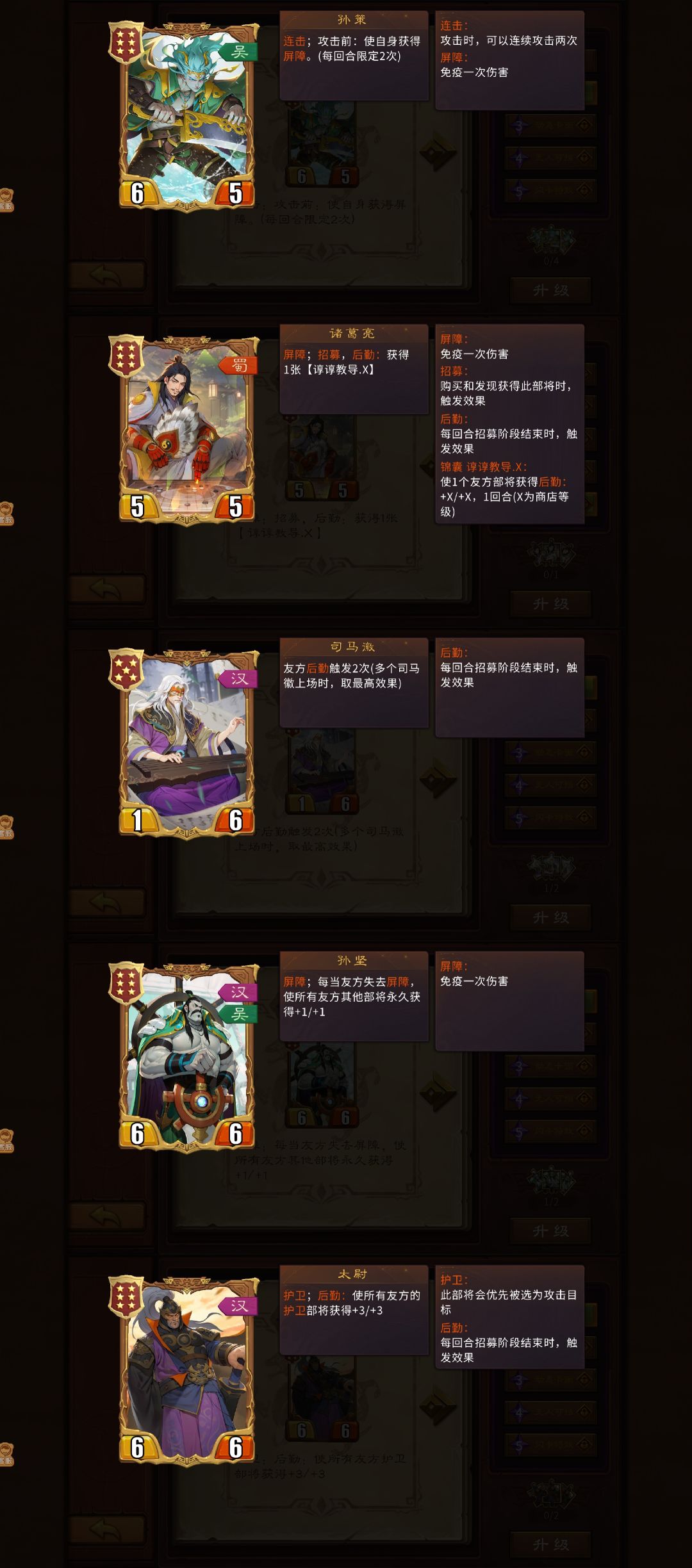 五、游玩思路:除非遇到过渡武将,否则以升本为第一目标;在六星后减少对没被提到的资源卡的购买,以阵容成型为第一目标