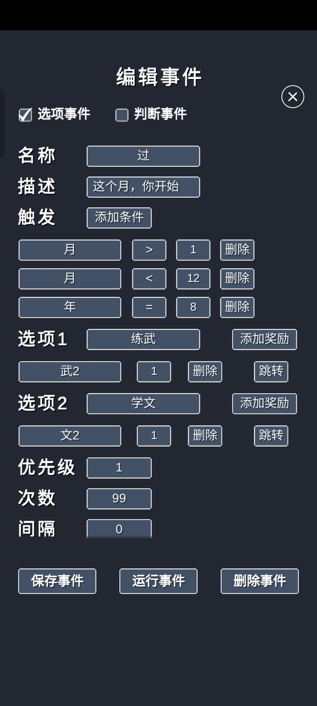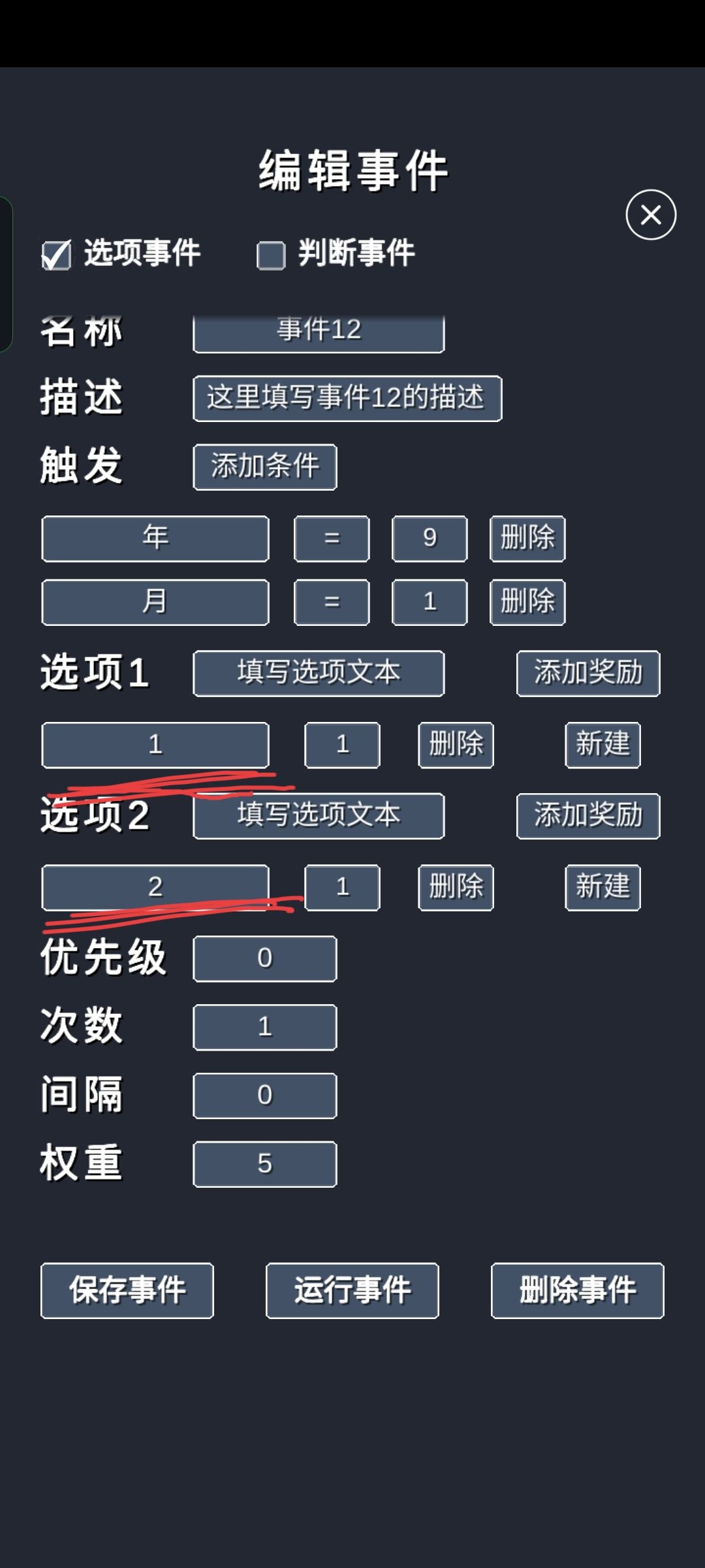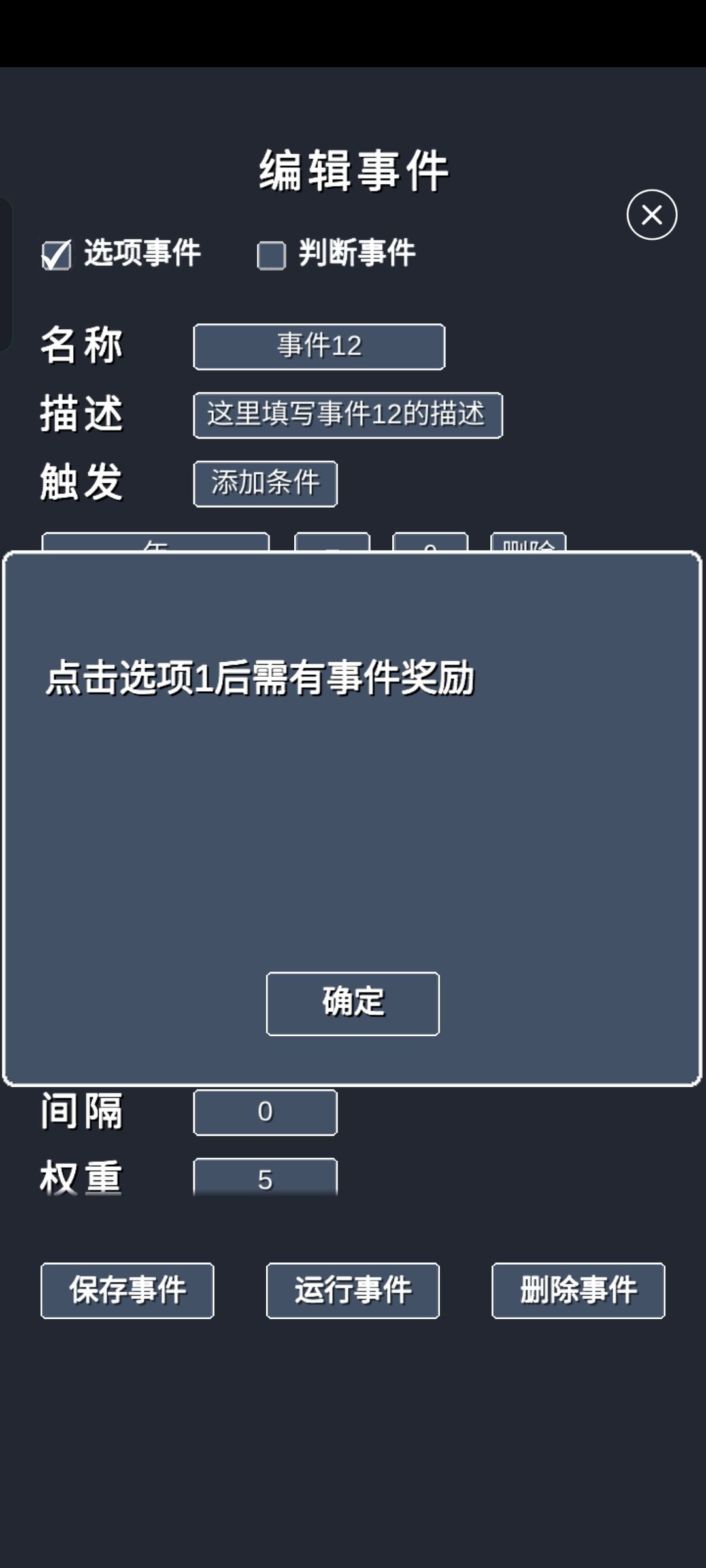 在这里填写的奖励才是真正有效的,注意,它既不是选择事件也不是判断事件。