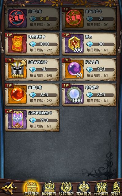 a、每日商店:5折符文水晶、1折高级英雄卡