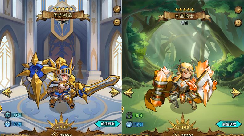 再来说前排肉盾的选择,首推圣光神盾,其次选择水晶骑士。圣光神盾可以给全队带来加攻/免伤/护盾以及普攻系数,这一点是很全面的,同时神盾也是三系第一坦克,其大招是唯一的AOE全体伤害。但圣光神盾在抗伤表现上来说是比不过水晶骑士的,在前期星级低的时候,抗伤害角度来说这俩半斤八两,等到了条件允许你升星的那一天,也基本用不到三系了,所以圣光神盾当之无愧的三系第一坦克。