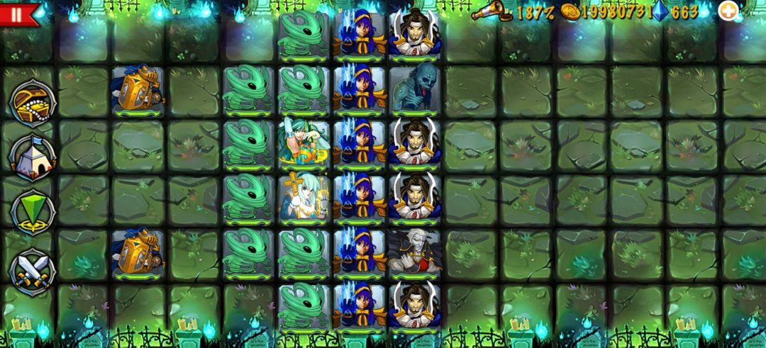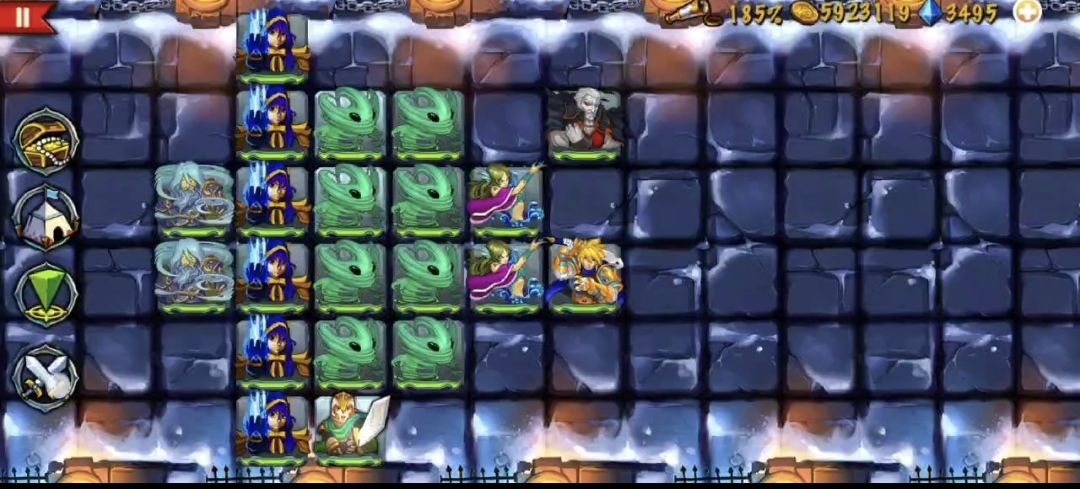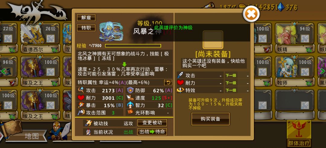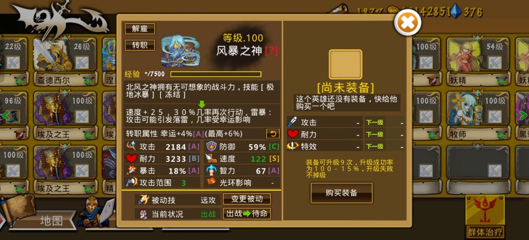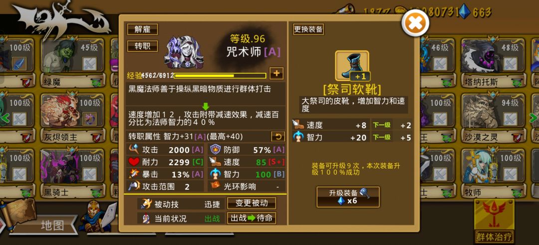 阵容成型后玩起来也算轻松愉快的,前排雷喀+吸血鬼开路,雷神捡漏,两火神转职后秒boss妥妥的,就是速度不行,后期补了个黑法配合减速