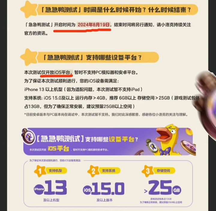 本次iOS首测为“技术轻测”,删档不付费,并将于8月19日正式开启