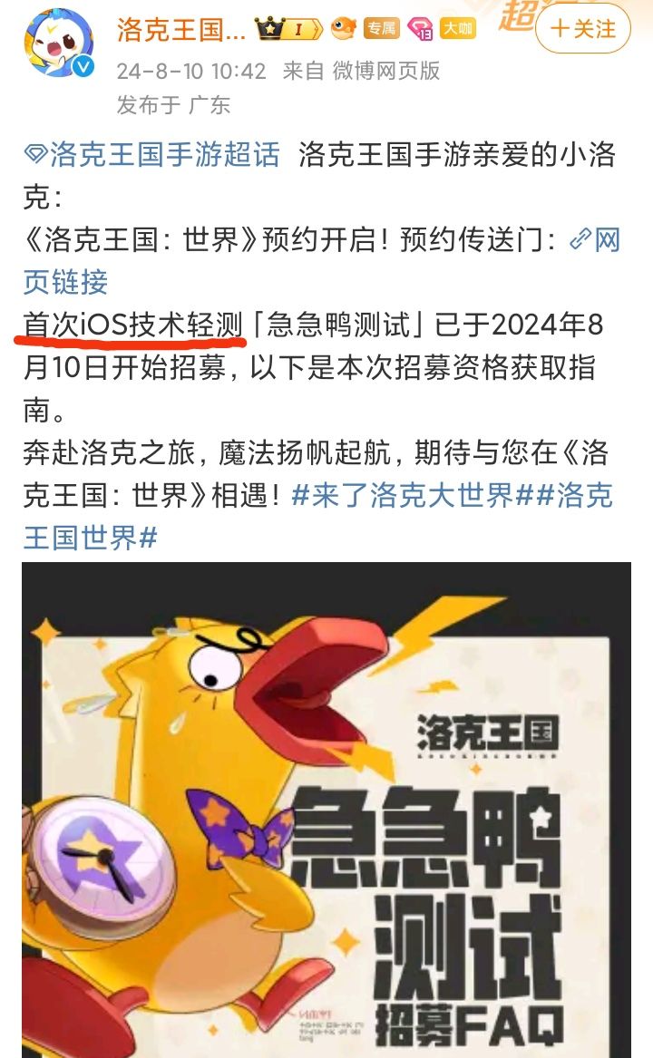 8/10号上午,腾讯旗下魔方工作室群自研的“洛克王国”IP手游《洛克王国:世界》,正式开启预约以及首次测试招募❗❗❗