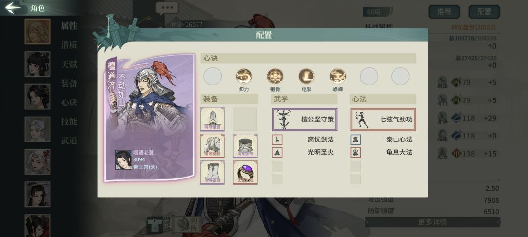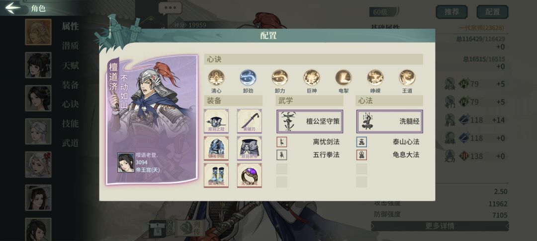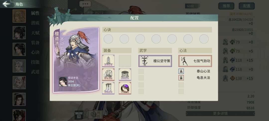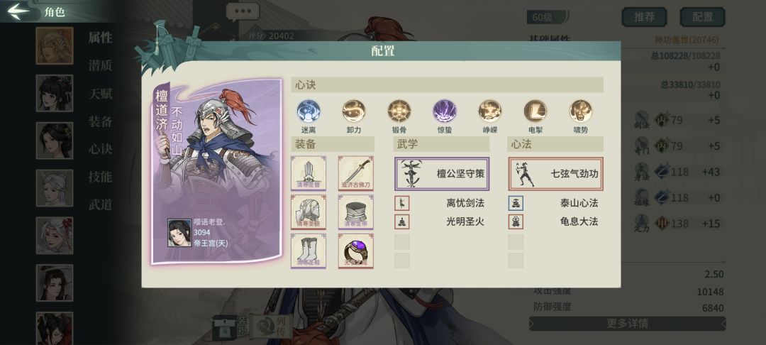 首先是基础配置,主要是讲解和基础常规配法,我选择了新手用的比较多的,檀道济。
