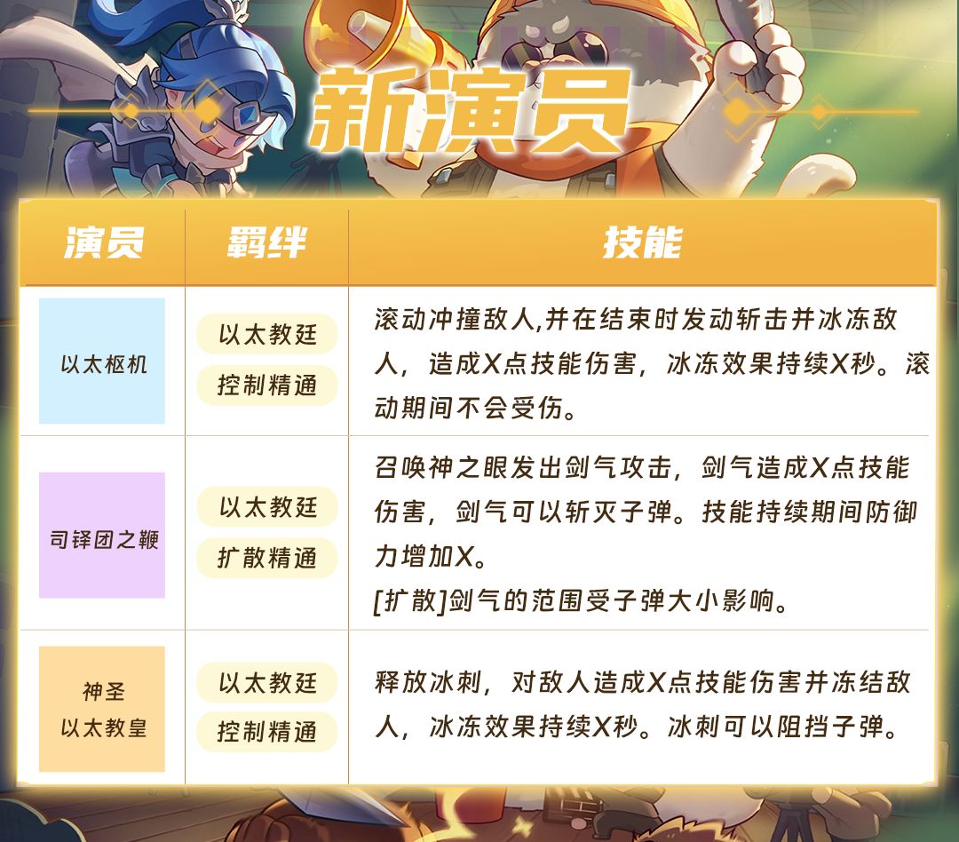 *以上描述为一层(以太教廷系列演员数为1)羁绊效果。