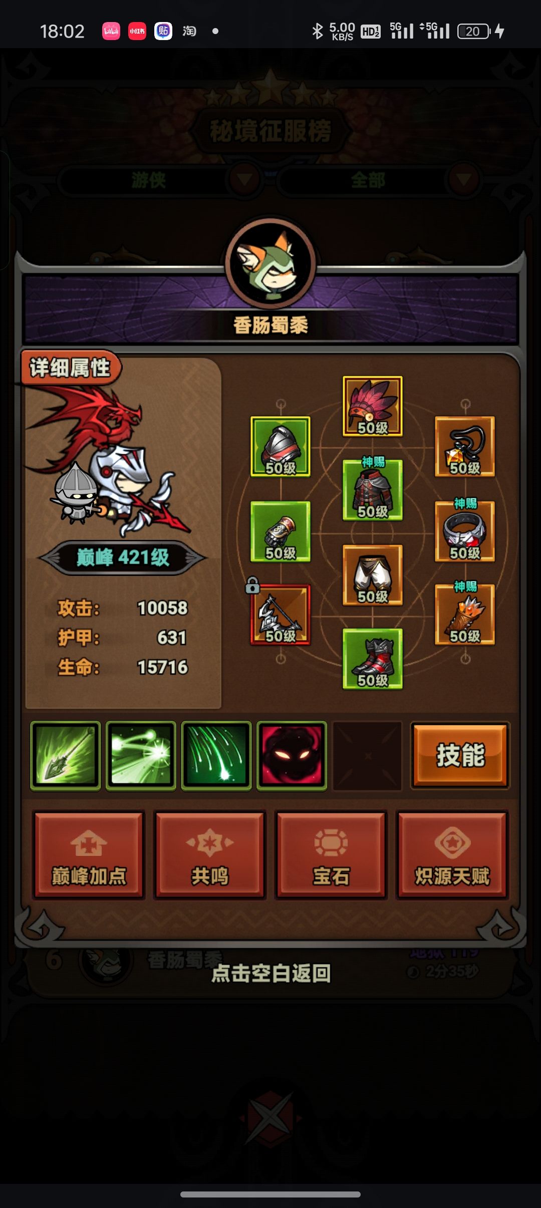 因为我因为我看了一下排行榜,前面后面和我的面板差距都非常的大,甚至装备都差距很大。