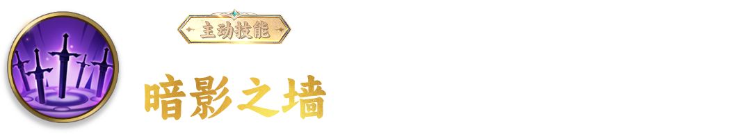 主动技能【暗影之墙】技能效果:对目标造成普通攻击伤害,并使自身部队在接下来的数秒内攻击力提高,技能免伤提高。技能解析:主动技能“暗影之墙”伤害效果并不突出,重点在于增益效果,对于队伍输出和技能伤害抵抗能力提升较为显著。