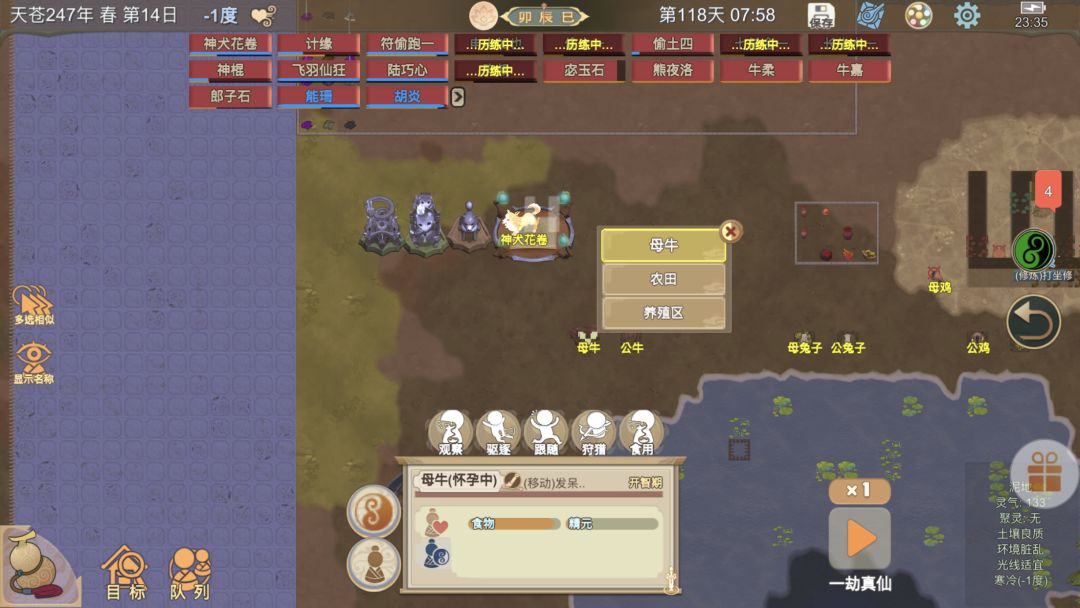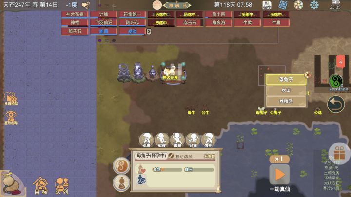 (小技巧:20天大哥出来了,可以派人去野外挂机50-60天左右,在返回,家里天数不变情况下,击杀动物好像可以直接变元神期妖兽,各位小伙伴可以去测试一下)