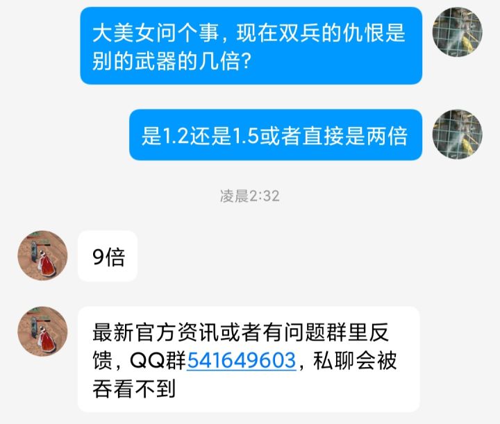 双兵的仇恨是别的武器的9倍,这个我问的小虾米不是瞎说的。