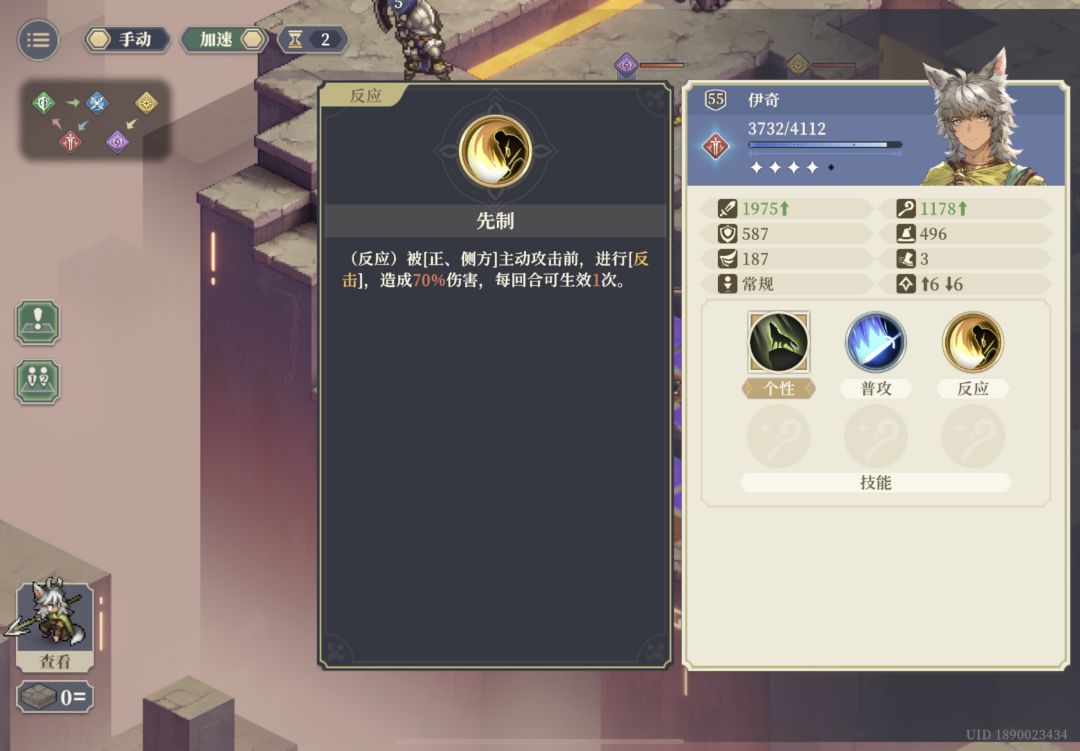 2、由于高地不受克制影响,伊奇配合被动逆克制输出价值提升,1星情况逆克制可达到1.07*0.7+0.15+0.07=0.969的攻击倍率,可能有望在本次逆塔出席(试了一下伤害不足配合猎手和绿职援护勉强能上场,略逊于法卡尔,可惜我法卡尔没点凝神和普通警戒)