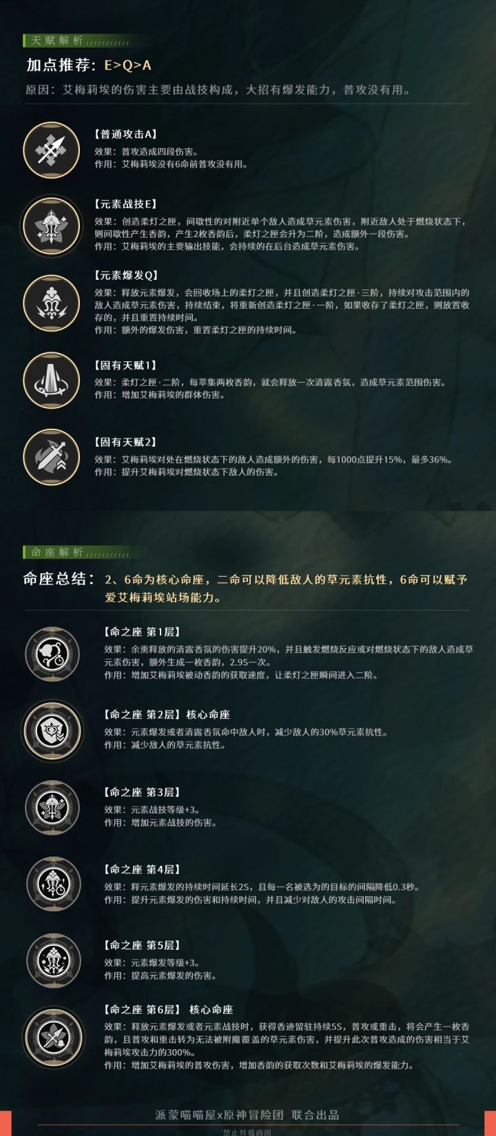 作用:提升艾梅莉埃对燃烧状态下敌人的伤害。
