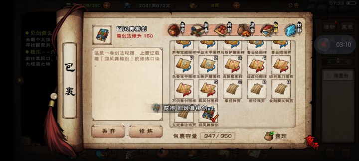 终于拿到回风舞柳剑了