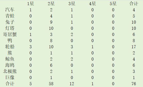 下图为统计结果,图鉴截图在附录A,无制作失误的沙雕。