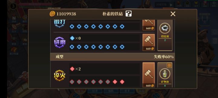 如此这般操作可以省下先锻打+研磨的金币,淬火失败导致的金币损失降到最低!!!