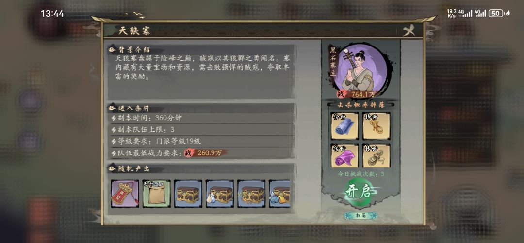 副本进入有级别限制,等级越高需要的战力越高,但是副本收益跟副本级别关系不大。副本掉落分为三类,药材,矿材加布匹,等级越高,产出的材料等级越高。正常情况下选同级别最高材料的副本进入,副本收益跟副本宝箱野怪的多少成正比,一般来说,点开副本界面,副本时间越久,副本里野怪跟宝箱数量越多,通关后总的收益越高。