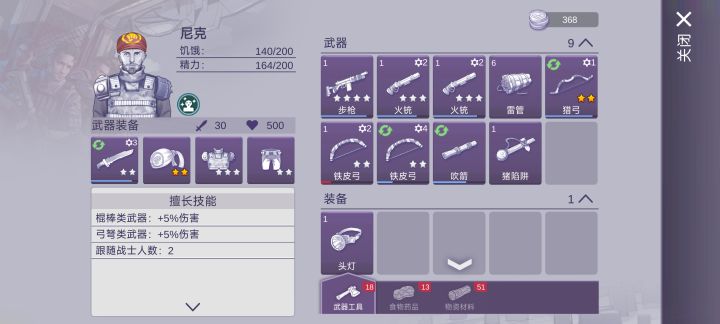 前期就正常玩就行了,注意:每天的野猪和兔子都刷完,能够保证中期不缺钱买黑奴。吃的靠鸡蛋,目前主要用的武器就刀,火铳,弓,火铳子弹决定你过图的速度。