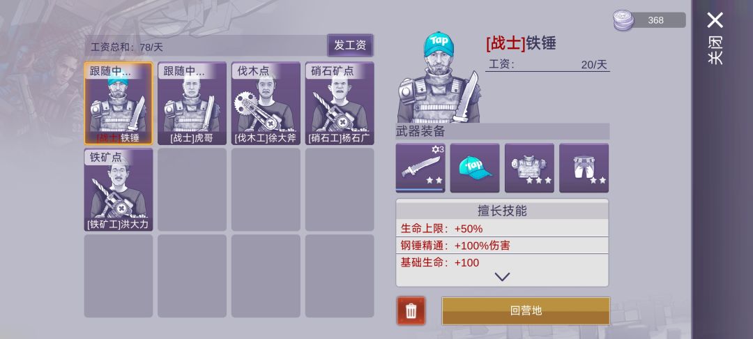 这样就够刷大本营。雷管都不需要用。(雇佣如图这几个名字,虎哥是后期系统送的,一定找最好最贵的就行)
