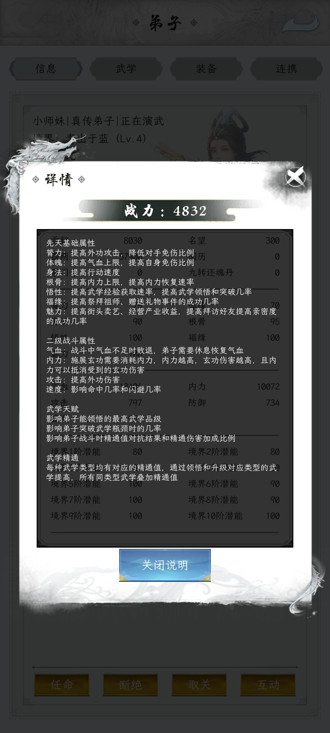 另外,刷到新的好弟子,遣散旧弟子之前最好保证旧弟子把所有任务都做完(兑换装备不用做完),这样才值得消耗一个掌门令,也就相当于同一个弟子做了两次日常。