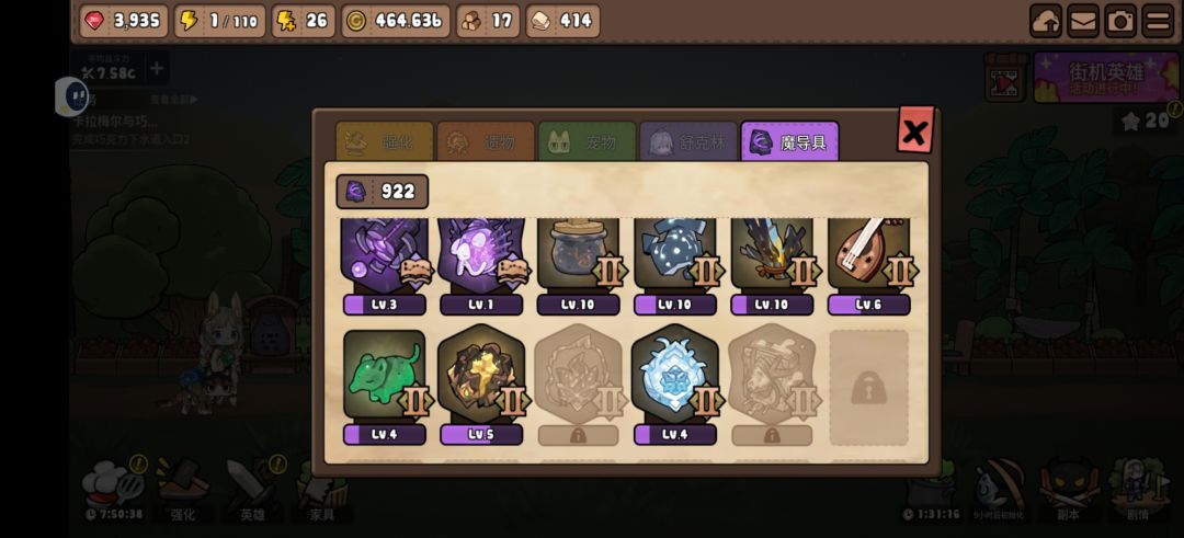 全英雄200级以太就没地方用了,新开的以太+遗物套装需要两个同时都有才能升级,纯遗物使用量更大,所以之前每天我都用大量的特别票分解兑换成布买宠物的皮肤,狸猫,猫咪都是24%了,绵羊和柯基都是15%,总算基础没有打错,目前在攒1000魔道具升级祭祀的禁书,感觉禁书有点太贵了不划算,但还是先买了再说。