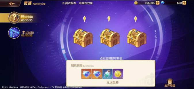 被封印着的宝箱,无需进行任何操作,等待一定时间即可打开宝箱获得奖励。