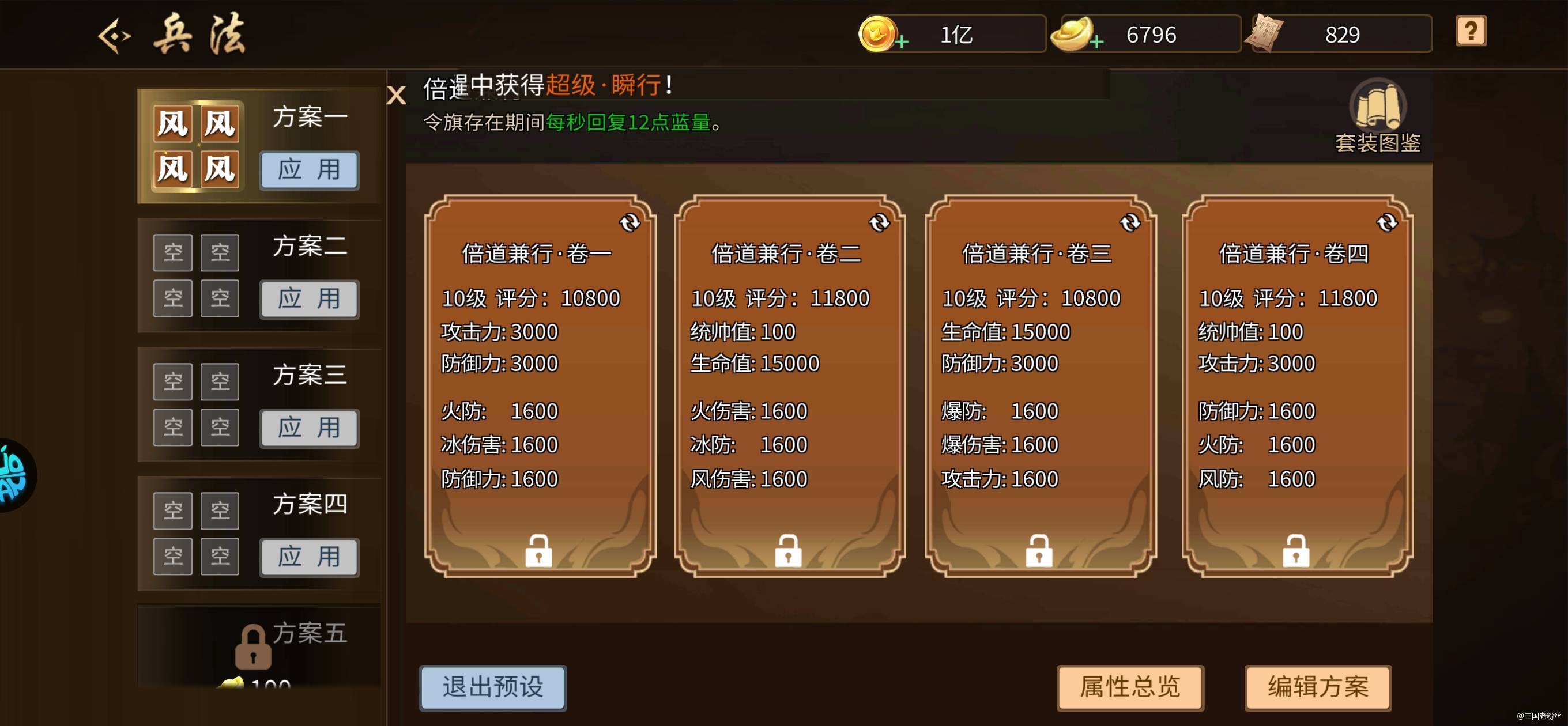 风火山林我觉得加怒气那套作用不大,看大家需求自行选择合适的,那套破气的就必须有,不然你打董卓会很费劲的。