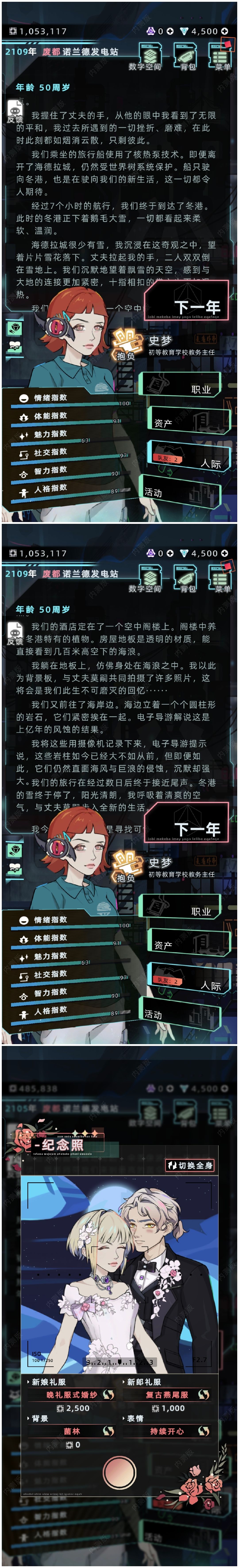玩到人物五十岁时候,真的很感慨。平心而论,我很讨厌离别。但选择作为赛博老师,还是坚持下去带了好几届学生,他们中有的退学有的提前毕业,大部分不会在毕业之后返回小学来。我在与他们短暂的定格相机毕业照,挥手送别他们之后,又到一年级去迎接新生的到来。