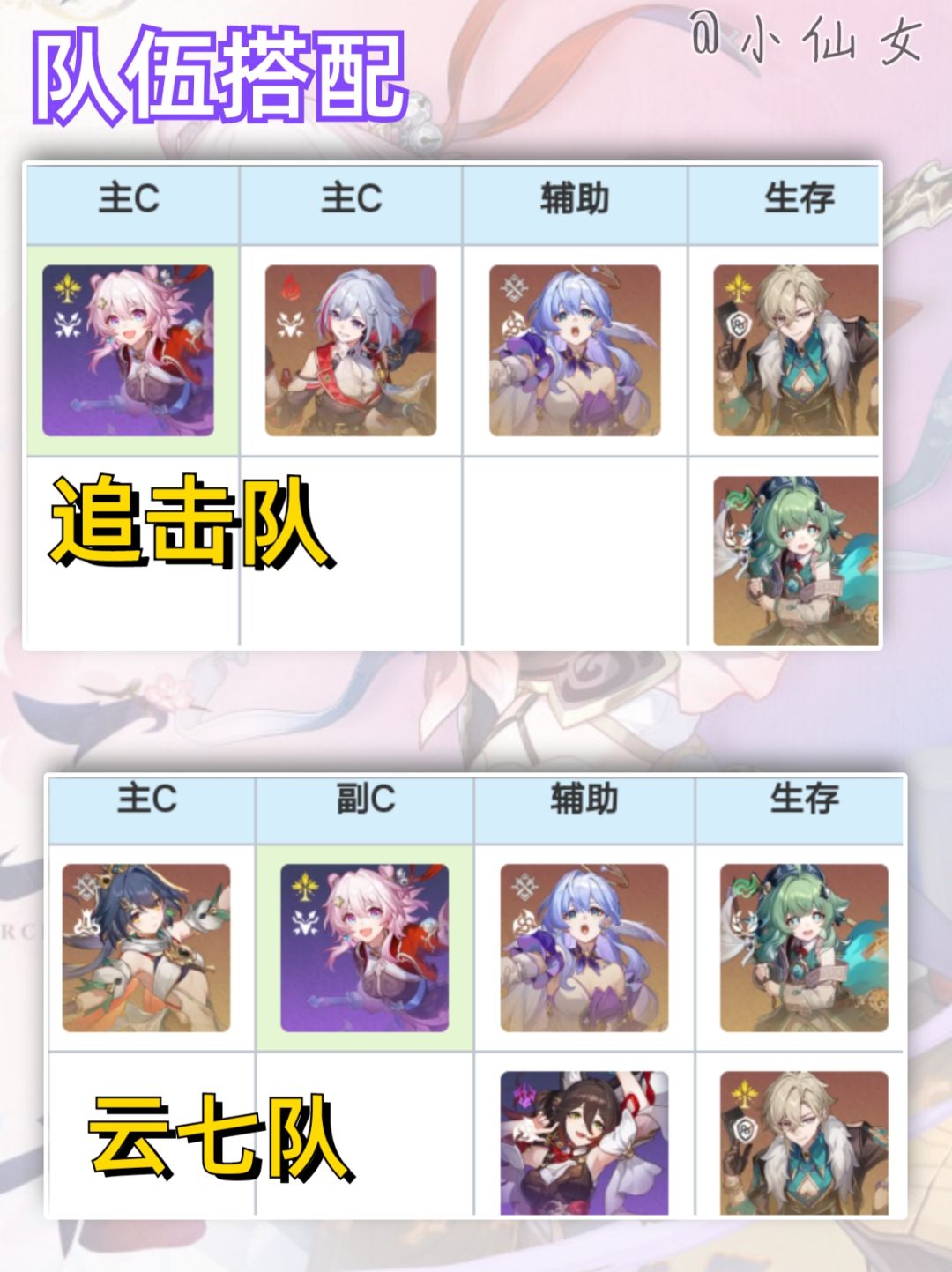 其可以在主推双C的追击队中有着良好的表现自身的高削韧配合可以削减具有【师父】属性弱点的敌方目标的韧性的额外能力,使得其可以担任击破队主C/辅C/副C