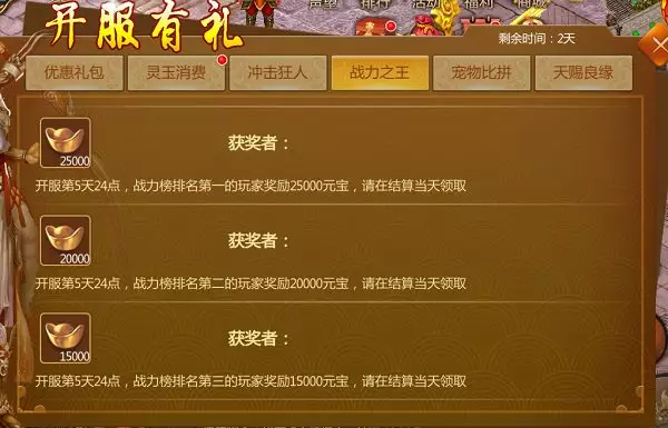 活动时间:开服日-开服第5日