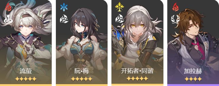 队伍中的流萤、阮·梅和同谐主角都是必备的,只有加拉赫可以被替代,替代角色有三种,一种是其他生存位角色,比如说藿藿、符玄;第二种是辅助角色,比如说艾丝妲、停云、佩拉;三是补一个姬子,提升一下队伍的对群能力,第二和第三种替代方式只有在生存压力比较小的环境下才可以使用。