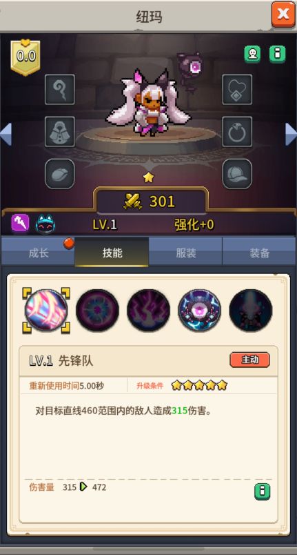 - 技能效果:对目标320范围内的所有敌人造成647伤害,并使[纽玛]的爆击概率提高20.00%4秒.