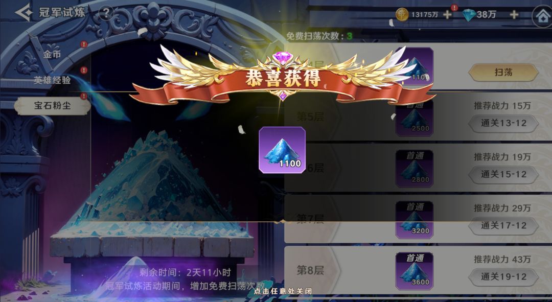 次扫荡,免费扫荡次数使用完后可使用钻石购买额外