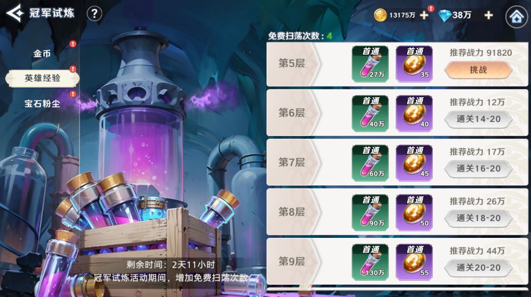 5.扫荡时,有百分之十的概率触发暴击扫荡,此次扫荡将获得双倍资源。