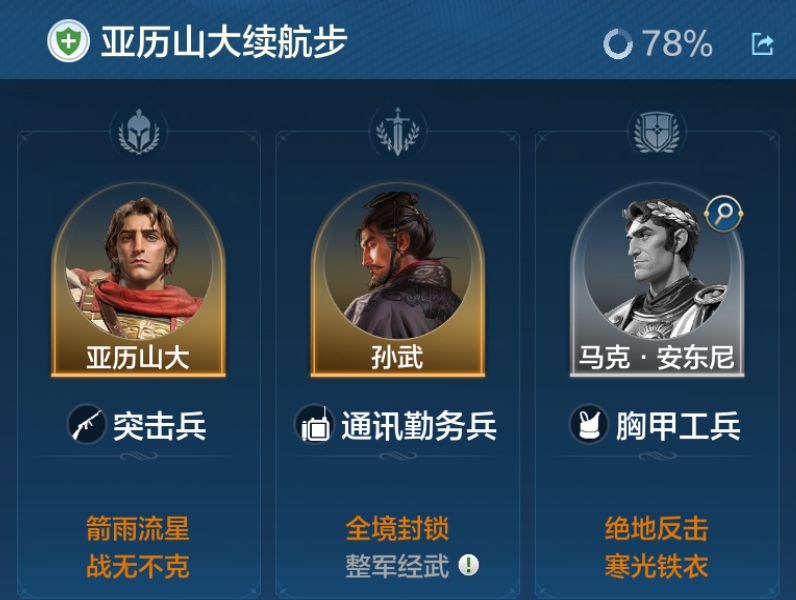 队伍偏向可以转为输出,这个时候由于孙武没有占用统帅的核心输出位,因此统帅能够放上攻击性更强的英雄,譬如最契合的就是亚历山大以及雷必达。这个队伍的攻击性相较于上面几个阵容会更强,初步能够实现击穿敌人的能力。