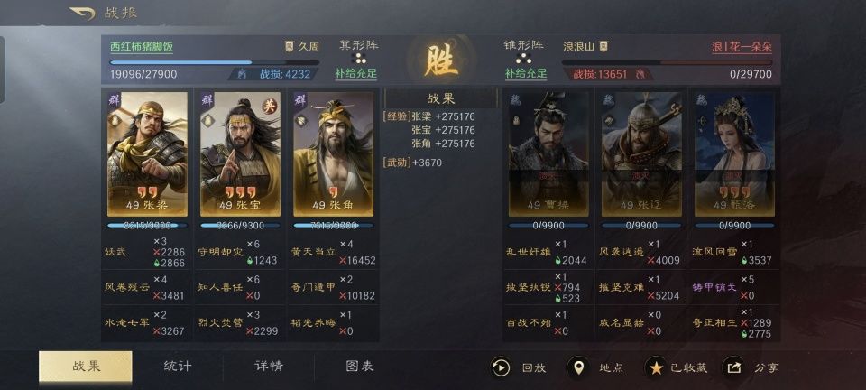 特别鸣谢游戏ID名为“西红柿猪脚饭”的玩家朋友,他所分享的战报,就是用自己麾下的话本版张宝,搭配原装张角和张梁,击败了张辽、曹操和甄洛组成的洛辽骑。作为S2赛季新增的人气菜刀王,张辽套着洛神buff竟然会在话本三宝的跟前马失前蹄,这配将方案难道不值得大家好好复盘吗?放心,这是个反问句,下文的内容就是详细分析。