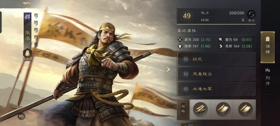 张宝携带的重盾兵和张梁的存在略微不同,虽然二人的基础特性都是不屈,然而张宝重盾兵的专精方向却选择了以逸待劳。这样可以提升更多的治疗效果,从而给前排负责挨打的张梁和后排负责输出的张角提供更多的奶量。