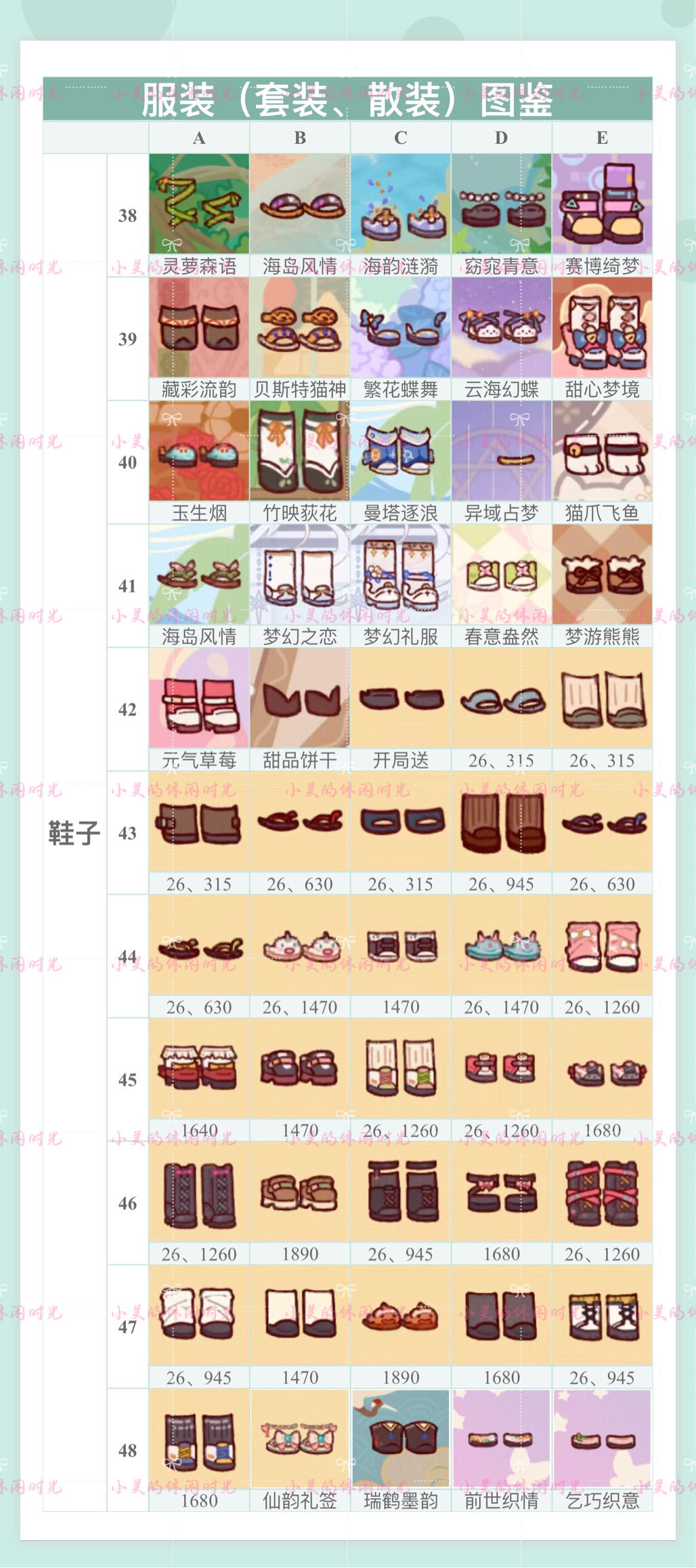 此次图鉴内容包含服装名称、服装价格和部分服装等级(下面标注服饰名称的是氪金服饰、数字26是等级、等级后面的是金币价格)