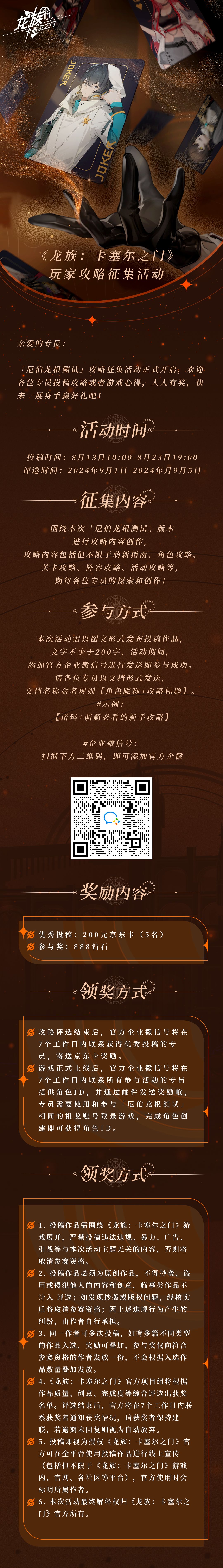 我们欢迎所有参与测试的专员基于「尼伯龙根测试」中的内容创作出《龙族:卡塞尔之门》各种类型的攻略!