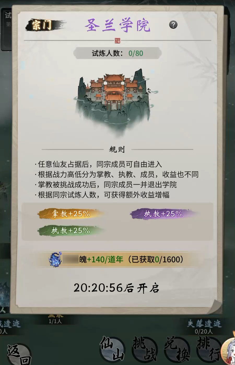 妖神试炼限时玩法“妖神试炼”即将开启,结丹前期对应境界及以上的仙友可参与。玩法共开放7天,将依次解锁天幻圣境、圣兰学院、光辉之城等试炼点。仙友可与同宗仙友或道侣一起占据试炼点挂机,或独自寻找试炼点修行,由此获取祖山灵魄,兑换丰厚奖励。