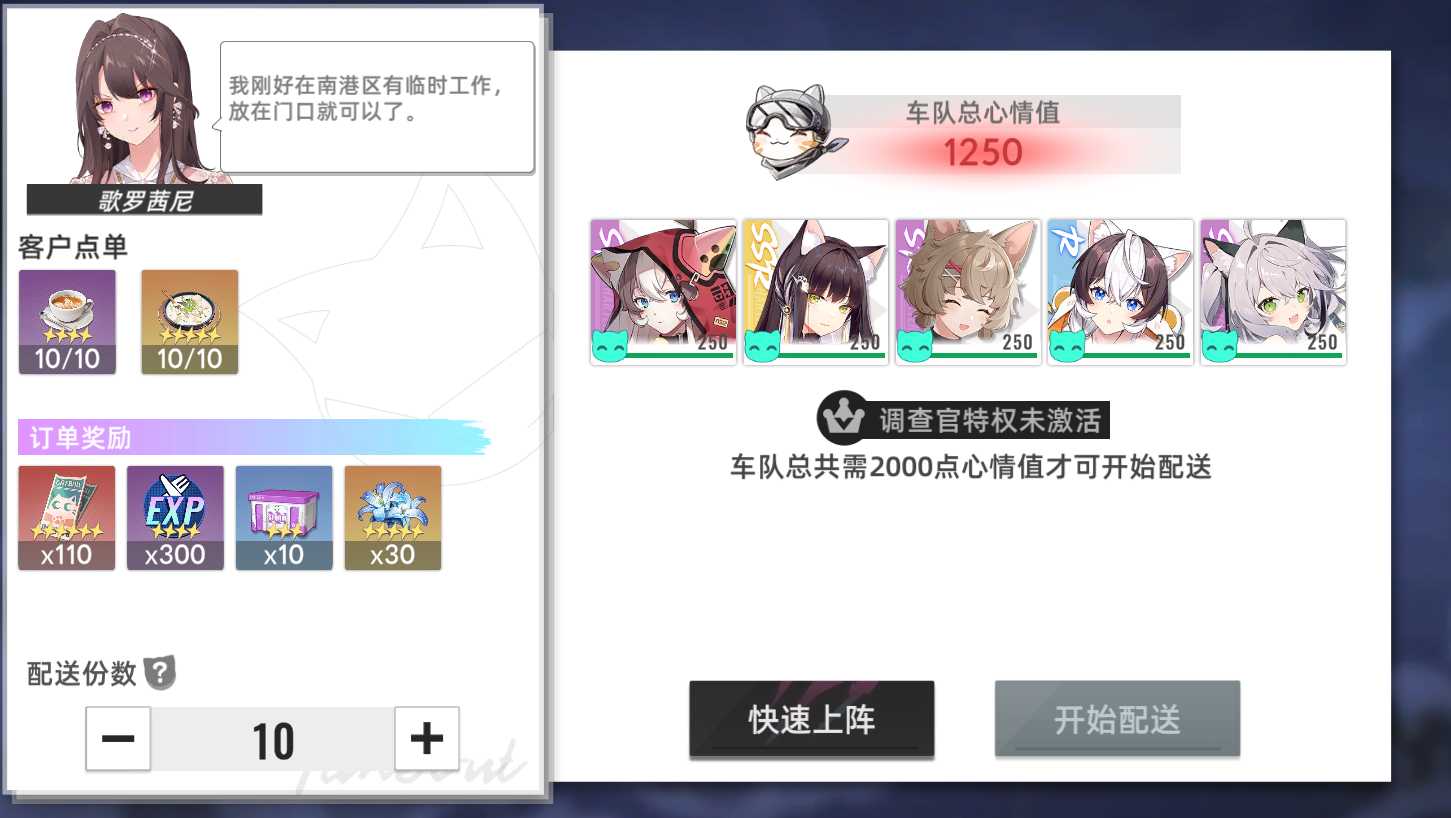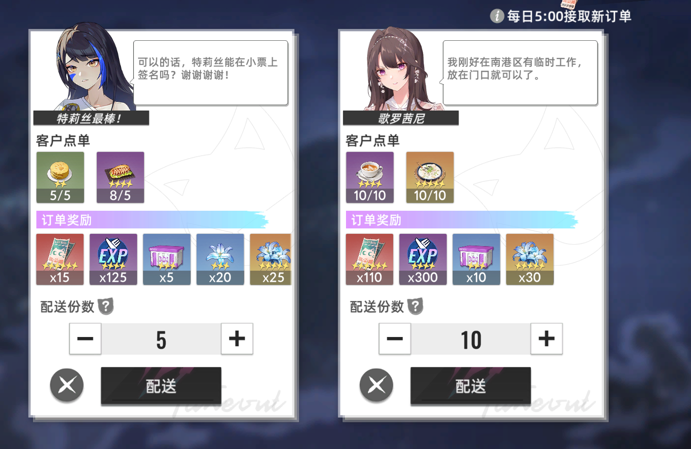 首先建议把所有地区的东西做完,这样就有每日60次订单了,然后4级后可以一次刷新2个订单选项,之前玩的时候一直都是出一个交一个,后来发现居然可以一次交10个 剩下的事情就是提高好感度让心情值变高就可以去直接接10次订单了