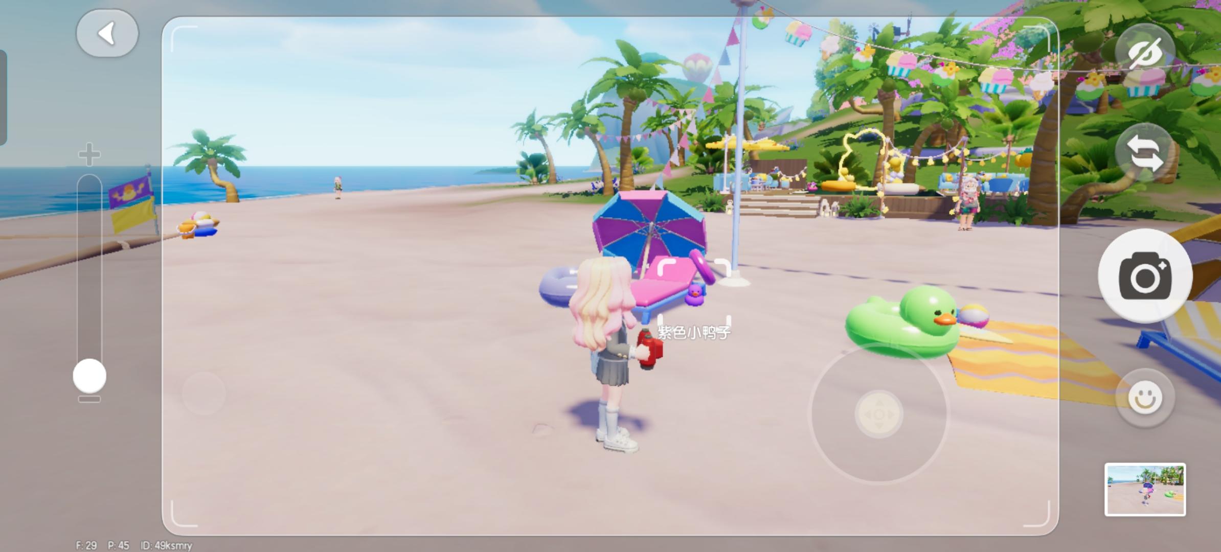 紫色小鸭子拍照沙滩波叔前面的躺椅