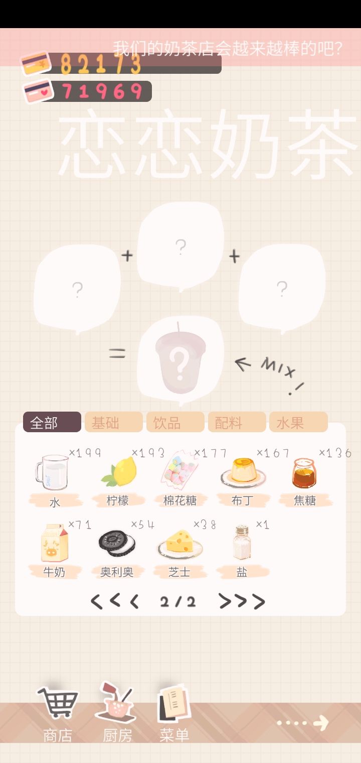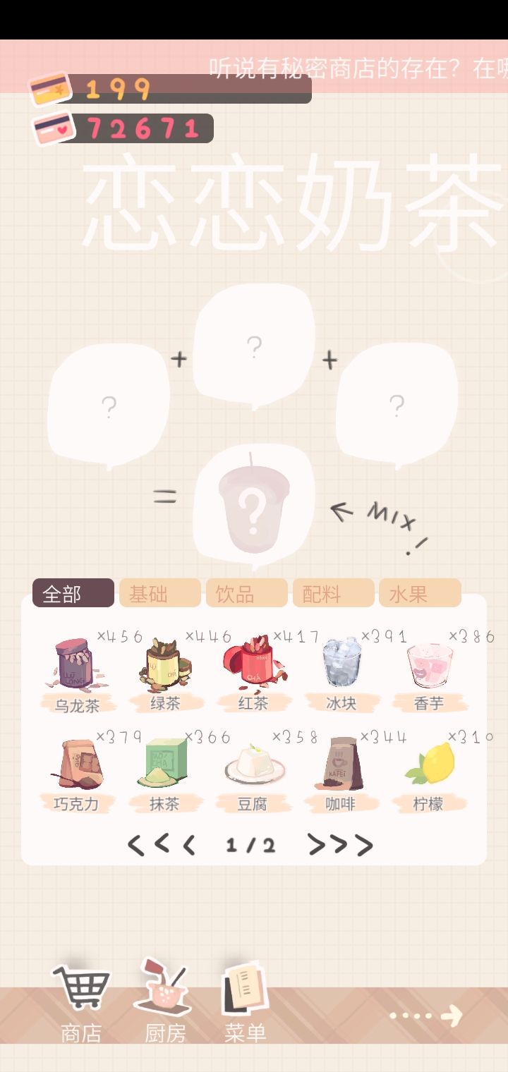这个爆率确实有点儿太低了(90000金币,200个十连,2000个就只有112个牛奶,并且其他的并不常用的材料积压的有点儿多,但愿后续出的奶茶会用到吧)