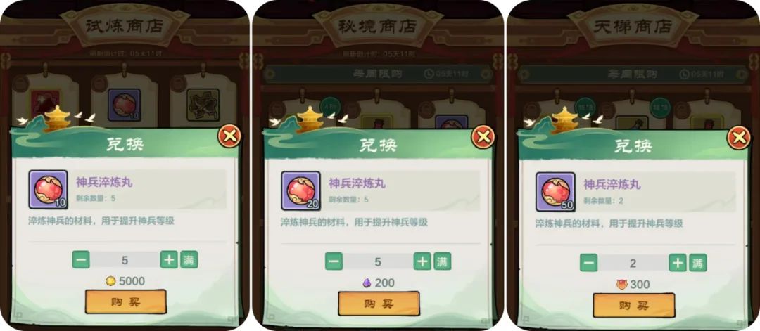 2、商店兑换:秘境商店、试炼商店