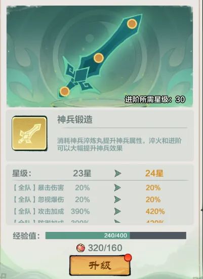 神兵锻造完成后还可以通过各种等活动获得相应神兵技能,重复获得的神兵还可以进行升级,让战力更上一层楼!